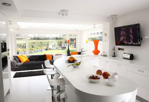 Glacier White Kitchen Posted on March 17, 2015 by Corian Glacier White Kitchen If there’s one thing we love, it’s doing curved worktops! These guys wanted something a little different so opted for an 80mm fascia. Made in Corian Glacier White with integrated sinks, there really was no other material for this worktop to achieve sleek clean lines without any visible joins. Customer Testimonial ‘When designing our bespoke kitchen a curved worktop was required to finish off the overall look. DFMK worked alongside us throughout the build making sure the entire kitchen maintained the ‘WOW’ factor. Nothing seemed to be a problem, in fact, their input and expertise was invaluable to the project and their professionalism and friendly attitude refreshing. We would highly recommend DFMK to anyone.’ Toni Startin & Mark Lemon