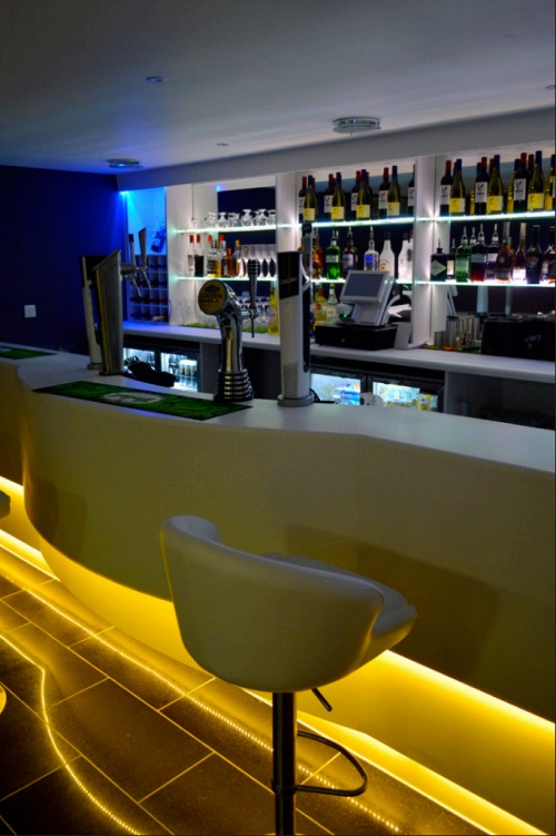 Crystal Palace Football Club 2010 Club Bar Posted on July 28, 2014 by Katie Shaw Crystal Palace Football Club 2010 Club Bar When we were asked to quote for this bar and cloakroom desk, we were a little confused as we knew that it was only 4 weeks away from their first game of the season…. So the challenge was on to design, fabricate and fully install the bar in time for the opening game of the season! We didn’t have time to have the cabinetry made so we decided to make the whole thing from Corian®. The colour chosen was Glacier White and we had to integrate lighting as well as include glass and mirrors in elements of the bar. The bar had to look the part but also had to be practical and easy to clean. The installation had to consider everything required for the bar to operate smoothly and look incredible. Our clients were very happy that we managed to do all this….. and in time for the opening game of the season.